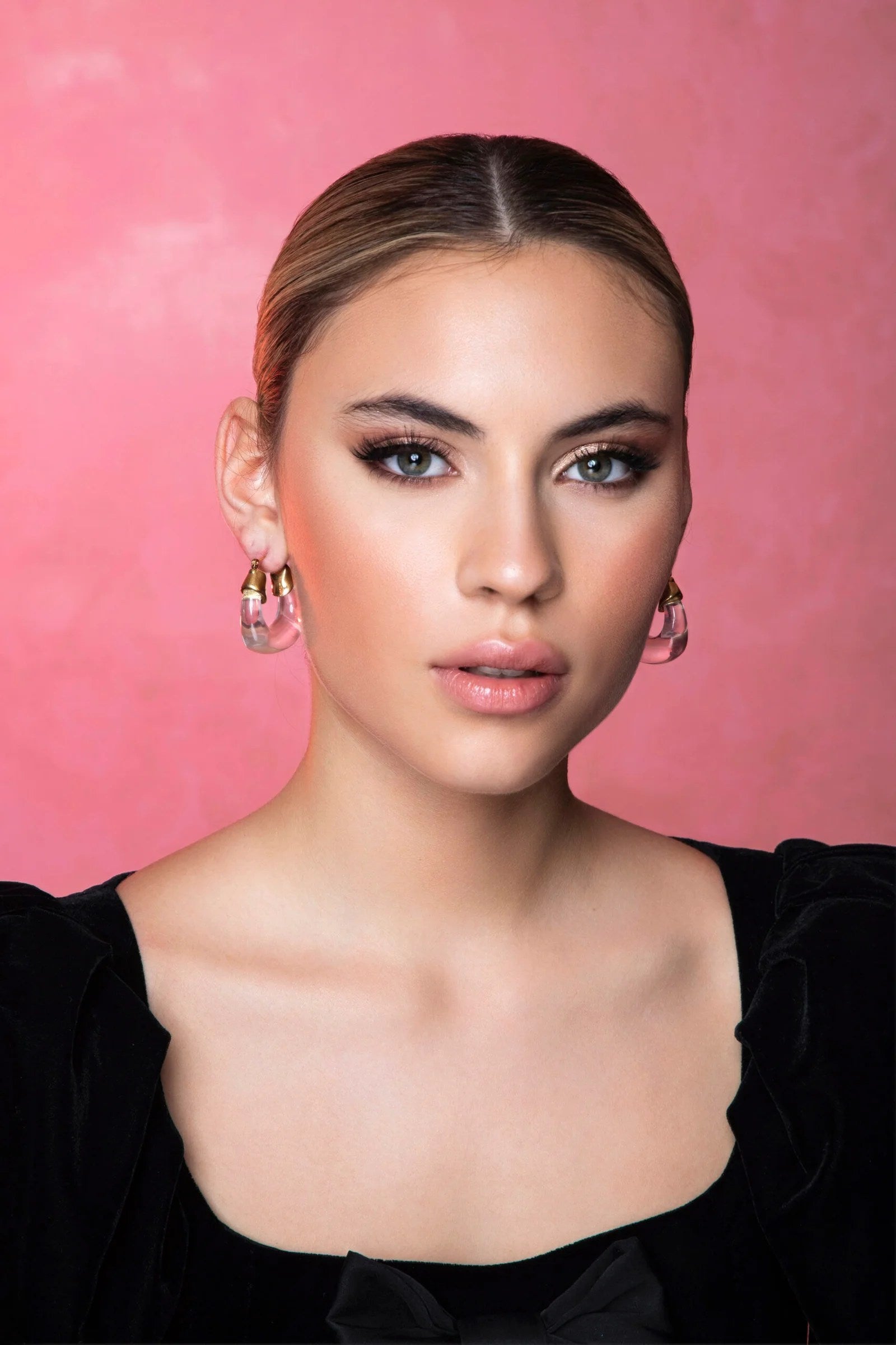 This earring features a clear marble drop with an irregular shape, reminiscent of a polished stone. The transparent form softly catches the light, while the golden caps offer a refined and modern contrast. Its sculptural silhouette adds a contemporary touch to any look.