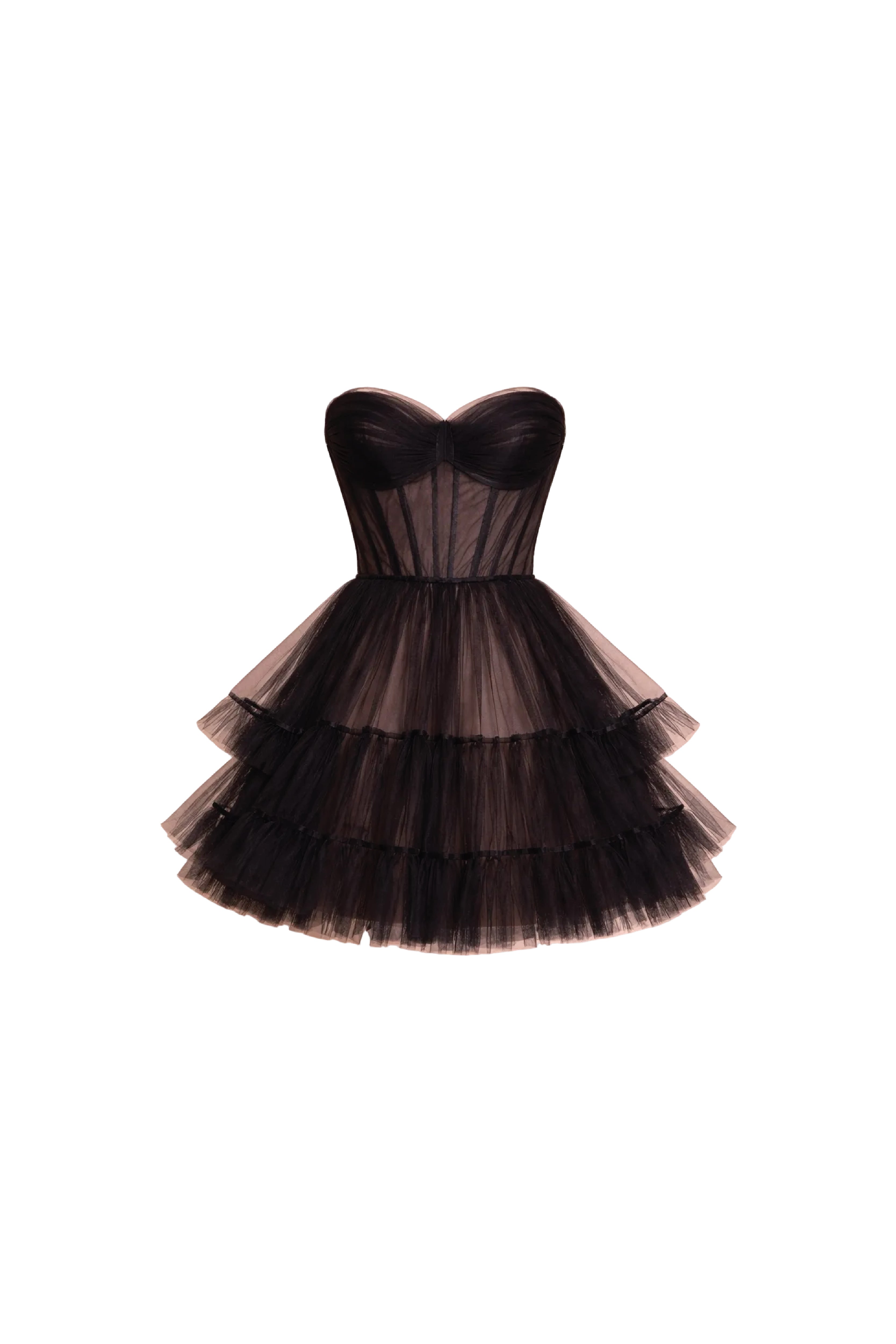 This black Tulle dress with tiered skirt, this style features refined details with an modern look.