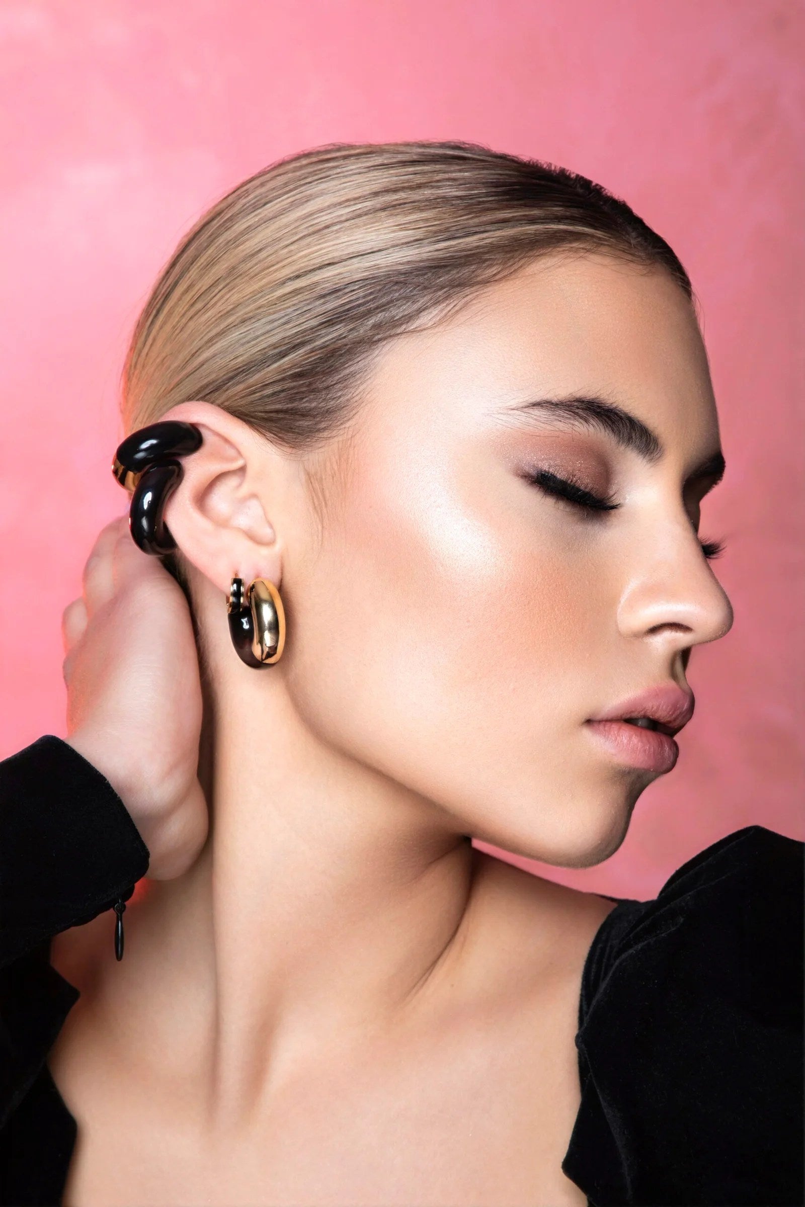 A bold pierceless ear cuff with a sleek half-black, half–gold-plated finish. Its sculptural, curved silhouette adds a modern, edgy touch to any ear stack.