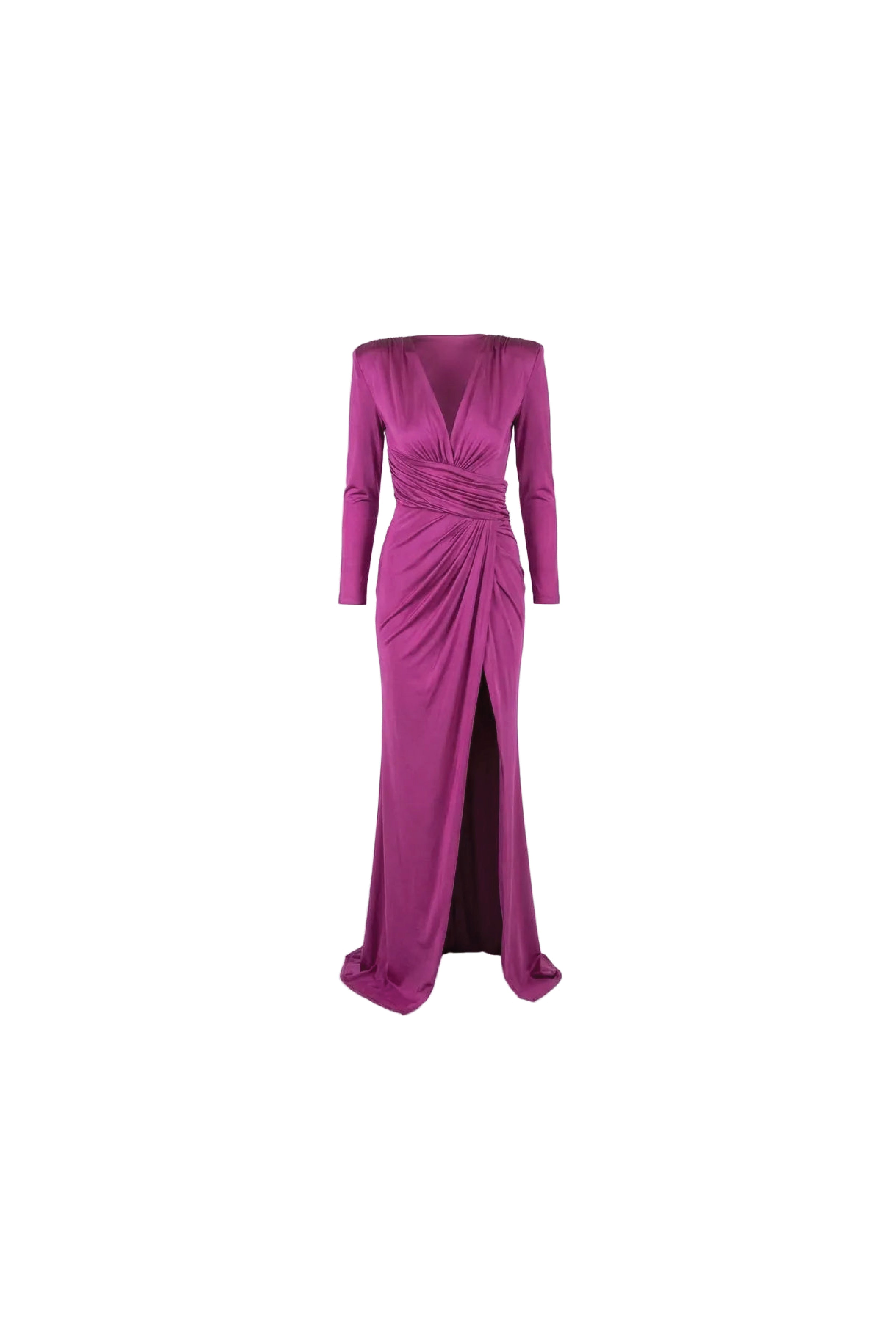 This Long dress is Designed with silk Jersey material, with a bodycon silhouette and soft floaty fishtail hemline, and features a front drape detail with a slit for maximum impact. show off yours with heels for a chic cocktail look.