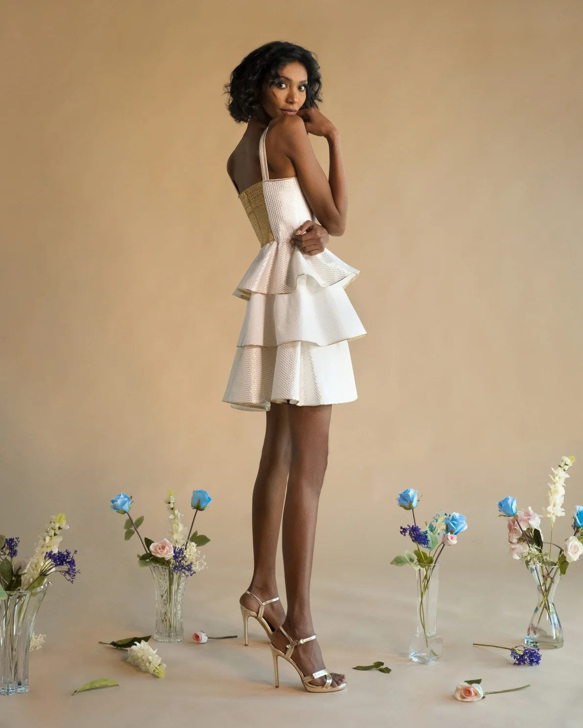 This Mini wrap dress is cut for a slim fit design to be fitted at the bust and waist with ruffles for a Modern Look.