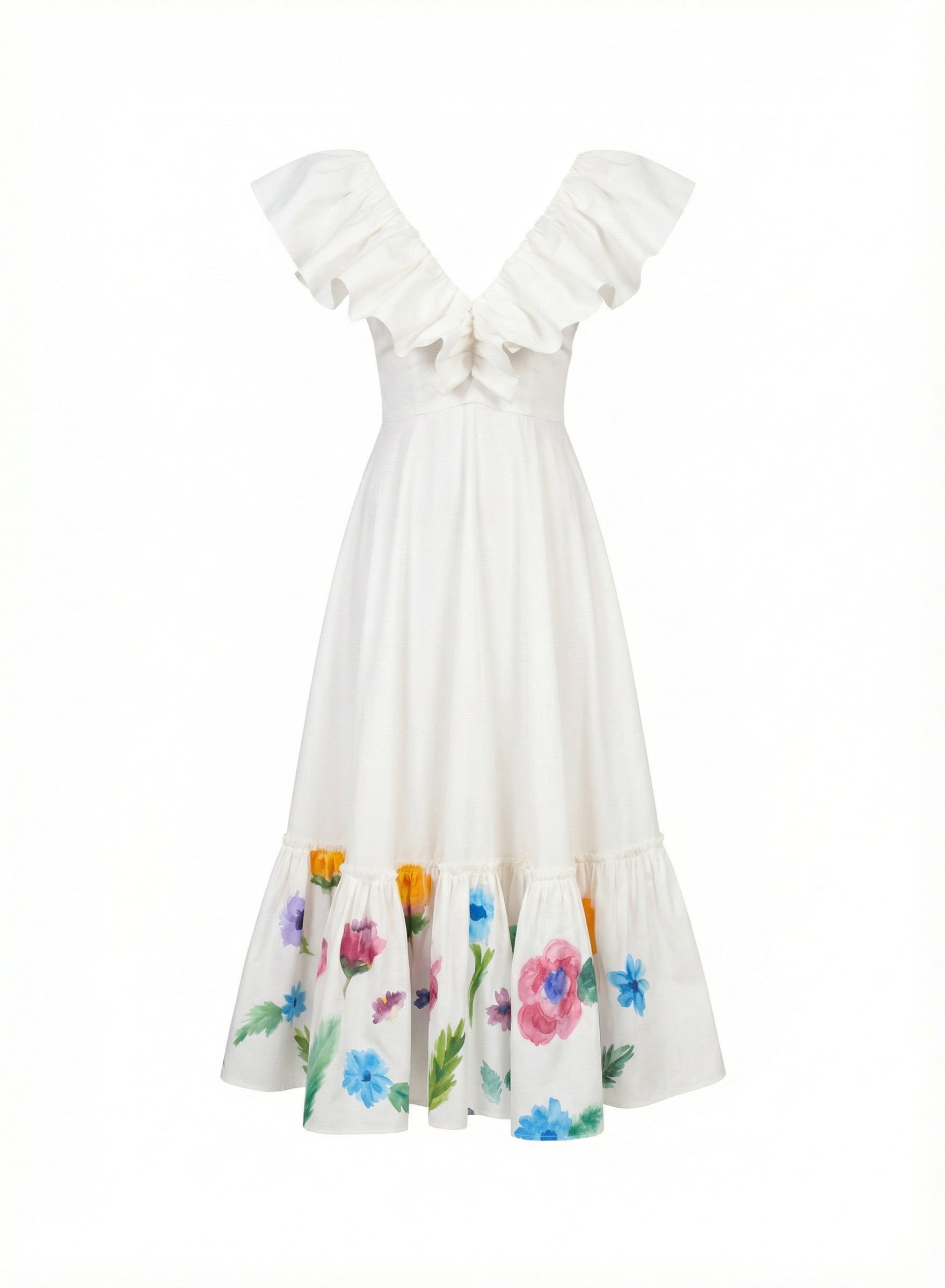 superimposed into cotton silk. This dress has a special silhouette, fits all body shape. Handmade painting. You can matched it with high heels for a cocktail look.